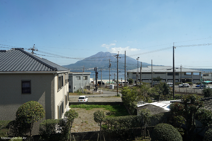 예상대로 사쿠라지마뷰를 즐길 수가 있었답니다.. 예전엔 앞을 가리는 건물들도 전봇대와 전깃줄도 없었겠죠.. 사쿠라지마뷰를 깨끗하게 감상하시려면 이진칸 인근의 이소해수욕장에 가시면 됩니다..