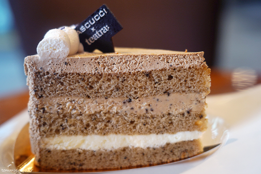 티트라 얼그레이 홍차로 맛을 낸 얼그레이 시트와 얼그레이 밀크티 크림에 화이트 가나슈가 샌드 된 케이크..