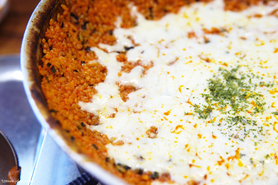FLYING FISH ROE FRIED RICE.. 날치알 볶음밥.. 2인 7,000원.. MOZZARELLA CHEESE TOPPING.. 모짜렐라 치즈토핑.. 2,500원..