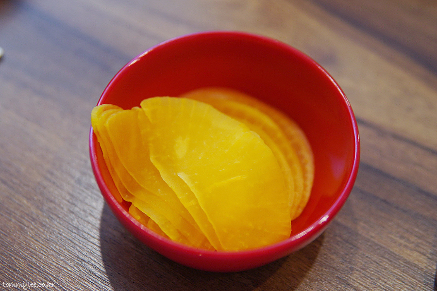 노란 단무지.. 얇게 슬라이스 되어 있는 단무지였고요..