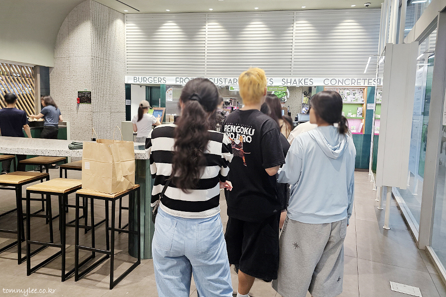 주말이라 많은 손님들로 붐볐던 쉐이크쉑 홍대점이네요.. CGV에서 내려와서 바로 빨려 들어가면 된단..
