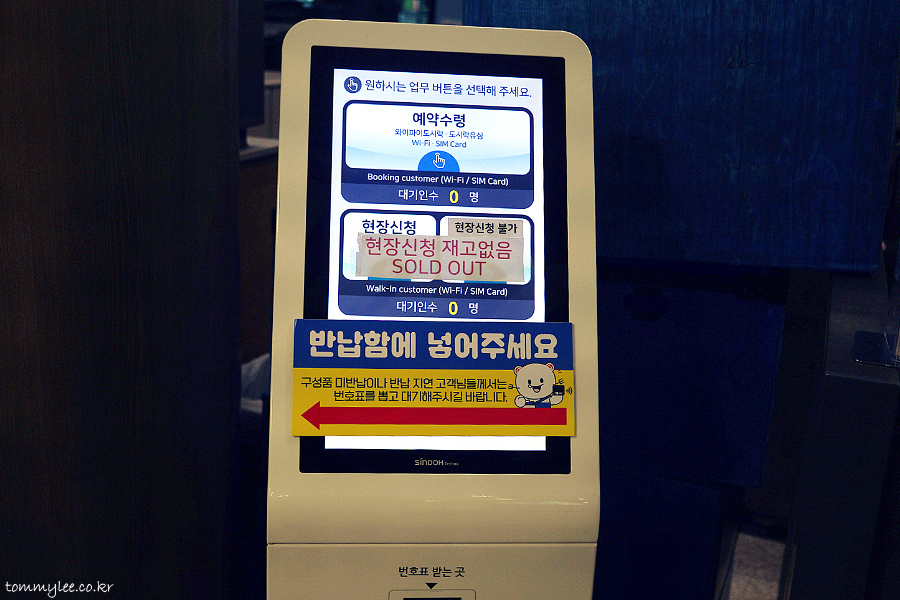 번호표를 받고.. 순서가 되면 데스크로 가서 예약한 와이파이도시락 단말기를 받으면 되는데요..