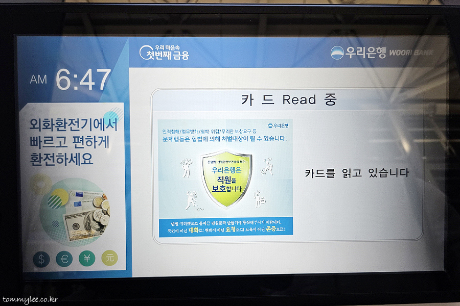 인터페이스는 우리은행 일반 ATM기랑 거의 똑같네요.. 카드를 삽입하라고 합니다..
