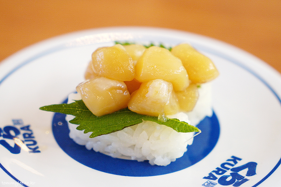 大盛り貝柱.. 오오모리 카이바시라.. 115엔(1,081원).. 산더미 관자 초밥..
