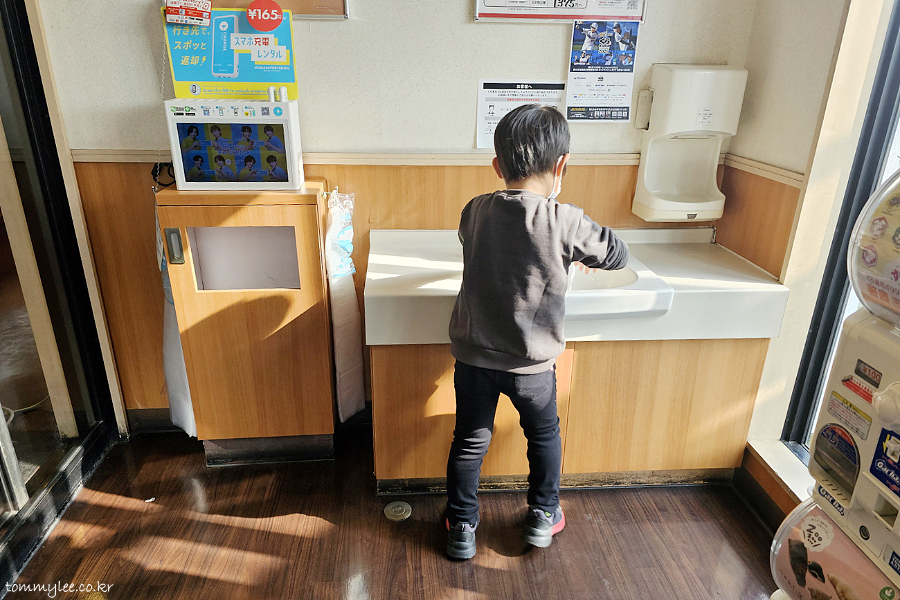 매장 안으로 들어서면 요런 느낌.. 꼬마가 손을 씻고 있네요.. 아무래도 초밥이 손으로 집어 먹어야 더 맛있는 음식이다 보니 매장 포이어에 이렇게 세면대가 배치되어 있네요..
