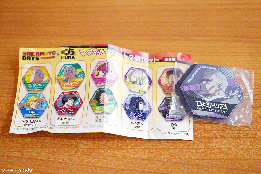 넷플릭스 인기 애니메이션 사카모토데이즈 주요 캐릭터 마그넷 시트가 2개씩 들어 있다고 하는데요.. 저는 당첨이지만 꽝인 것 같은 기분이 들었네요??..