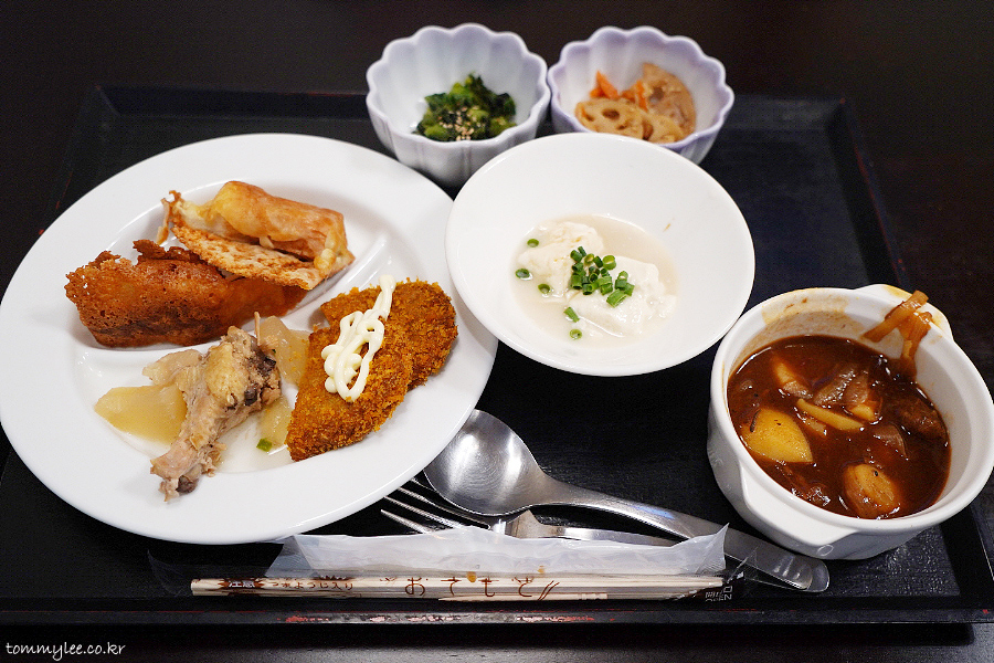 저는 약간 일본풍으로 가져와봤어요.. 온천은 아니지만 호텔에 대욕장이 크게 있어서 아침에 일어나자마자 이용했더니 유토후를 먹고 싶었거든요.. ㅡㅡㅋ..